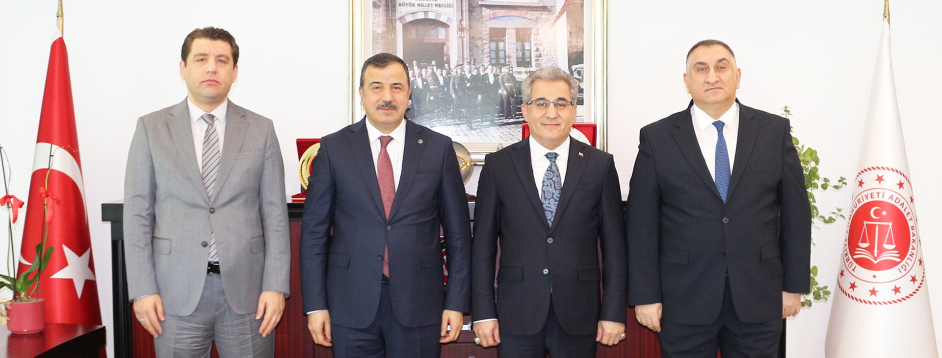 Adalet Bakanlığı Hukuk Hizmetleri Genel Müdürü Sayın Abdurrahim TAŞ, Genel Müdür Yardımcısı Sayın Yusuf Kenan ZOR ile Daire Başkanı Sayın Selim SOYLAR, Başkanımız Sayın Cemil Hulusi PARLAK'ı makamında ziyaret etti.