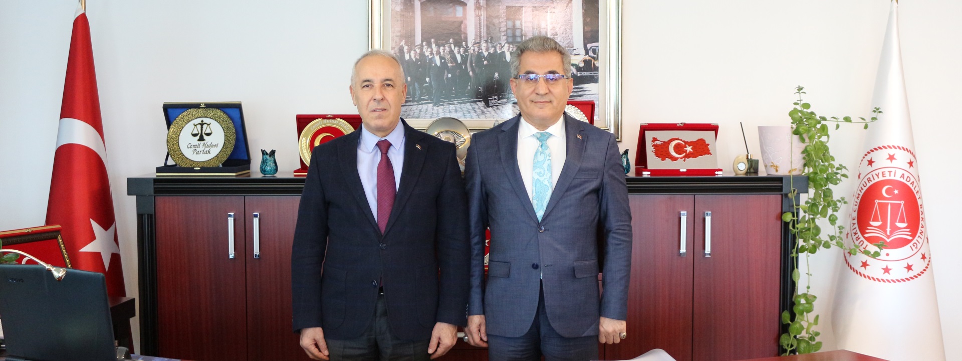 Ankara Bölge Adliye Mahkemesi Başkanı Sayın Ramazan AKSAN, Başkanımız Sayın Cemil Hulusi PARLAK'ı makamında ziyaret ettiler.