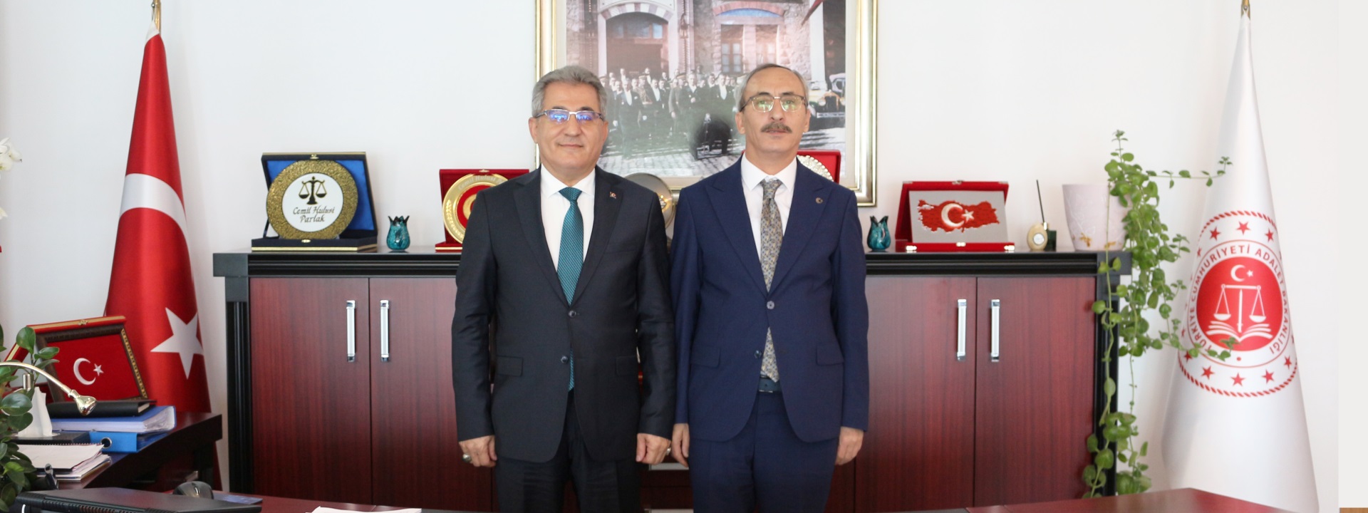 Kastamonu İdare Mahkemesi Başkanı Sayın Reşat AKCAN, Başkanımız Sayın Cemil Hulusi PARLAK'ı makamında ziyaret ettiler.